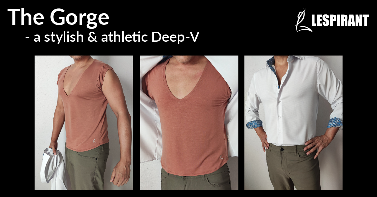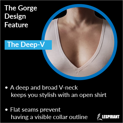 The Gorge is a truly deep V-neck, and was inspired and named after the largest canyon in Europe, Les Gorges du Verdon in France.