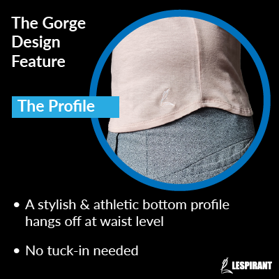 hangs at waist level with stylish and athletic profile. no need to tuck it in. |