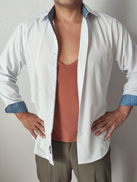 | Deep and broad V-neck | Stays out of sight even with the top-3 buttons of a shirt open |
